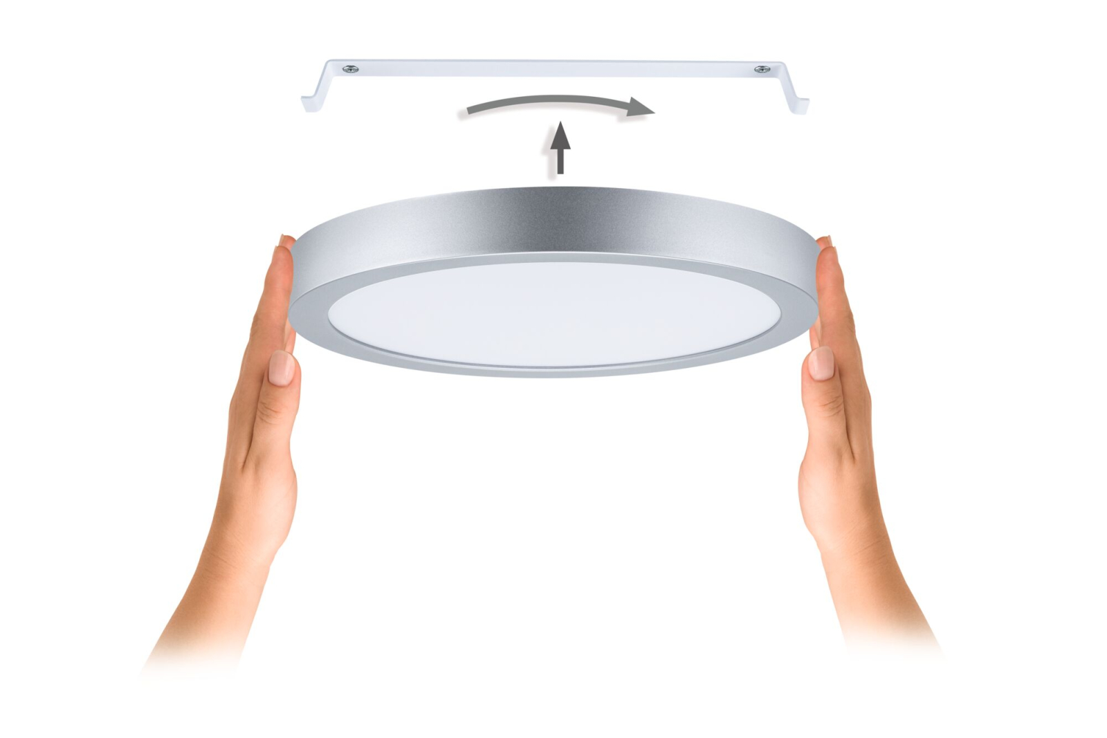 Comutatorul DIP White Select oferă flexibilitate maximă, permițând setarea culorii luminii înainte de instalare. Puteți alege, în funcție de necesități, între două nuanțe de alb cald și o nuanță de alb neutru. Panoul cu diametrul de 300 mm este ușor de montat și se integrează armonios în orice spațiu de locuit, funcțional sau de lucru, datorită designului său alb, simplu și atemporal.